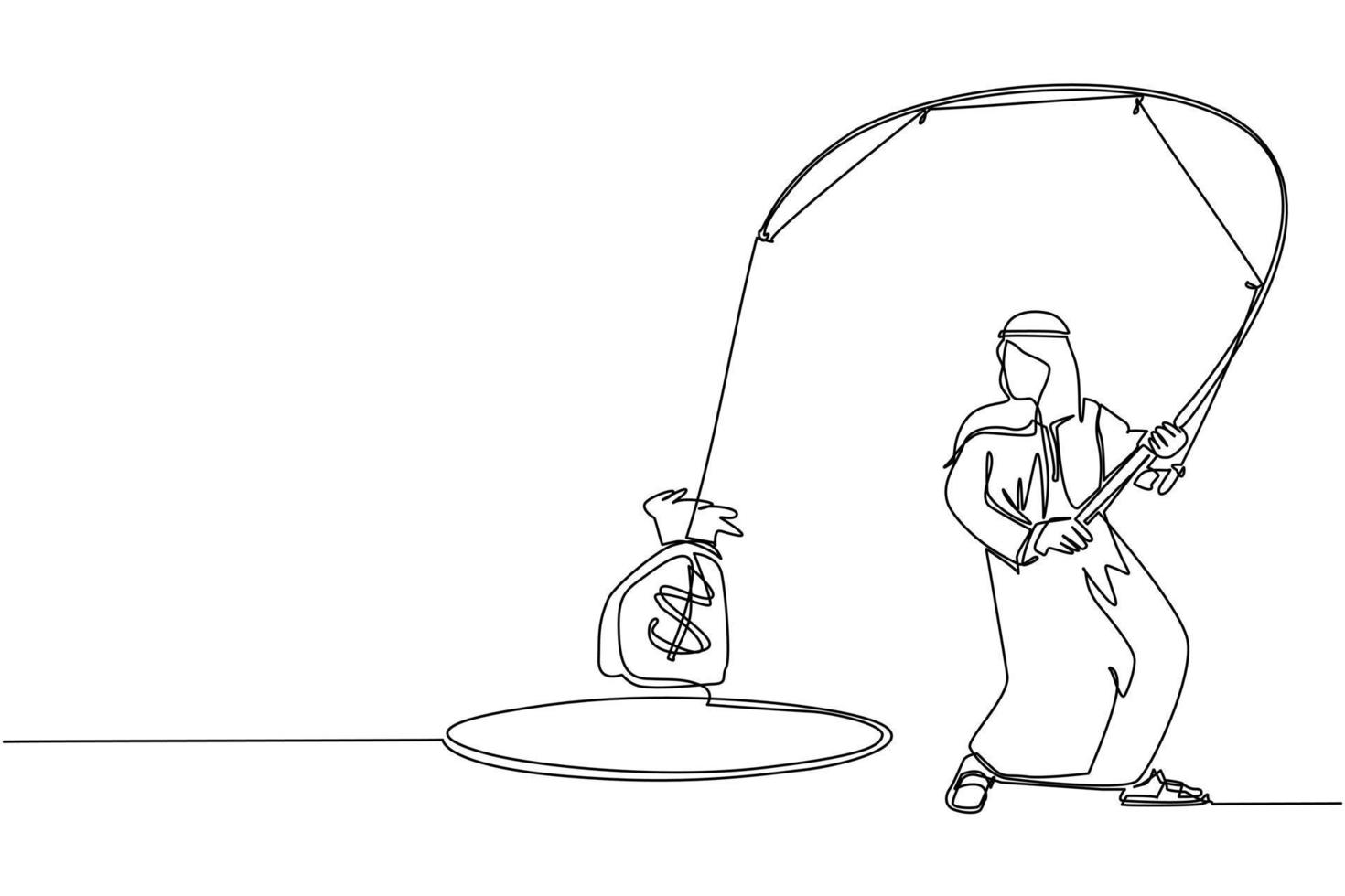 Single Continuous Line Drawing Arabian Businessman Holding Fishing Rod Got Big Money Bag From Hole Man Catching Money Bag With Fishing Rod Business Concept One Line Draw Design Vector Illustration 10309208 Vector